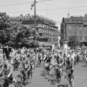 Dans des villes telles que Los Angeles, Rome, Tokyo ou Sydney, le vélo a été pour deux tiers de la population et pour plusieurs générations LE moyen de transport par excellence. Ainsi une grande partie êtres humains des générations précédentes a grandi avec le vélo. De plus, en ce temps là, faire 25 km ou plus pour se rendre à son travail était presque normal. En effet, dans les années d’après-guerre, le vélo était le moyen de transport le meilleur marché, le plus accessible et le plus attractif pour se déplacer.